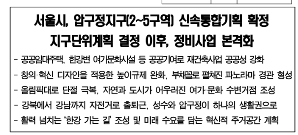 재건축 신속통합기획안은 압구정 2∼5구역에 대한 계획으로,